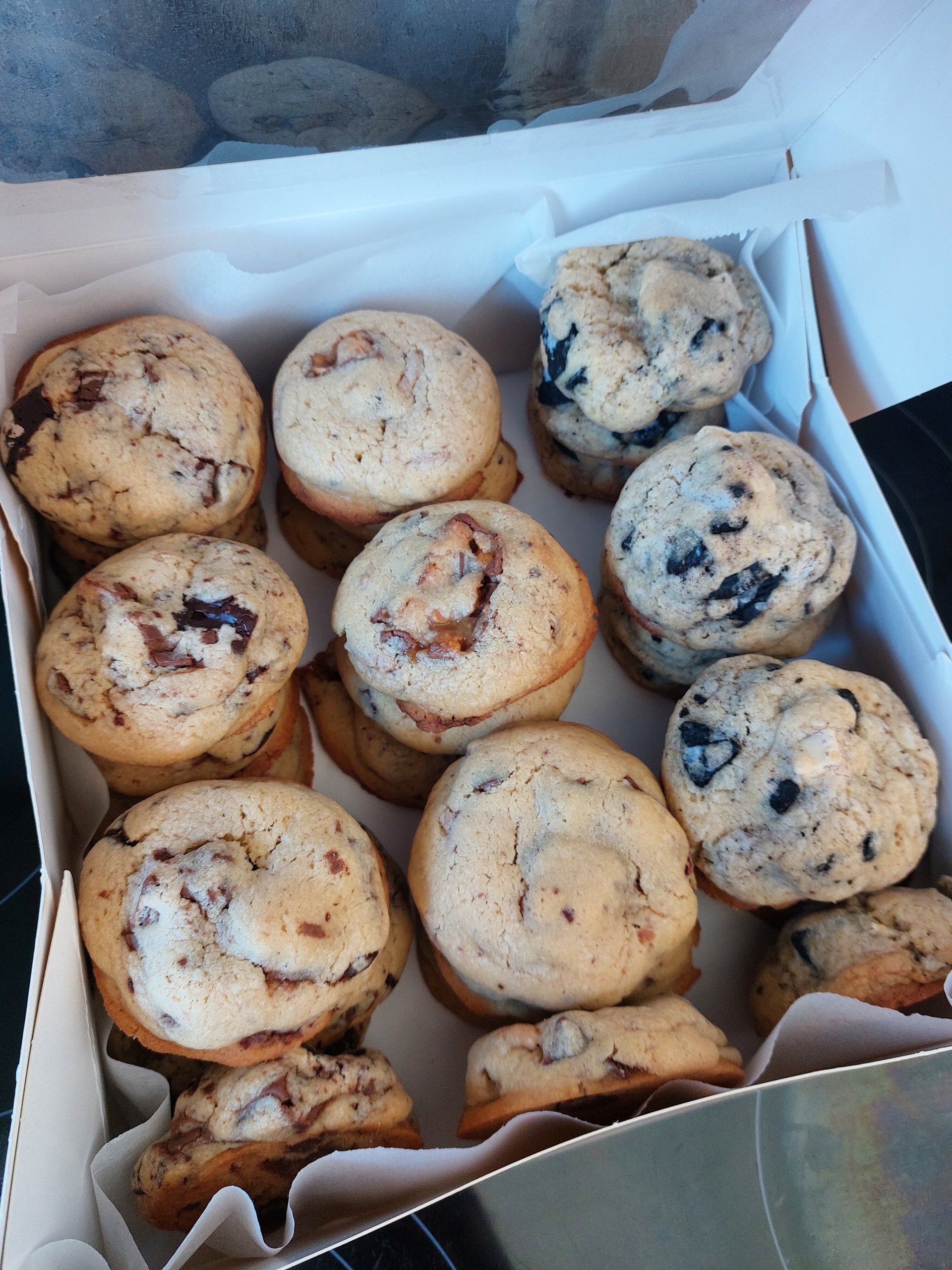 De Amerikaanse box is een overheerlijke combinatie van chocoladekoekjes. Elk koekje is zorgvuldig samengesteld, zodat elke chocoladeliefhebber iets naar zijn smaak vindt. De koekjes zijn in Amerikaanse stijl: groot, rijk en gevuld met verschillende soorten chocolade en jouw favoriete snoep uit de winkel. De Oreo-koekjes zijn gevuld met witte chocolade. De KitKat-koekjes combineren melk- en pure chocolade. En de Snickers-koekjes bevatten een mix van melkchocolade en karamelchocolade. De Amerikaanse box is perfect voor feestjes en verjaardagen. Voor meer details kan je ons contacteren via het contactformulier. Want waarom kiezen voor één koekje als je er drie kunt hebben?