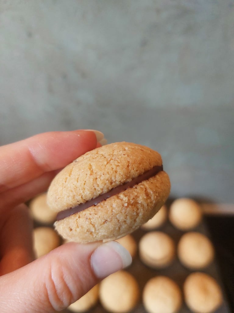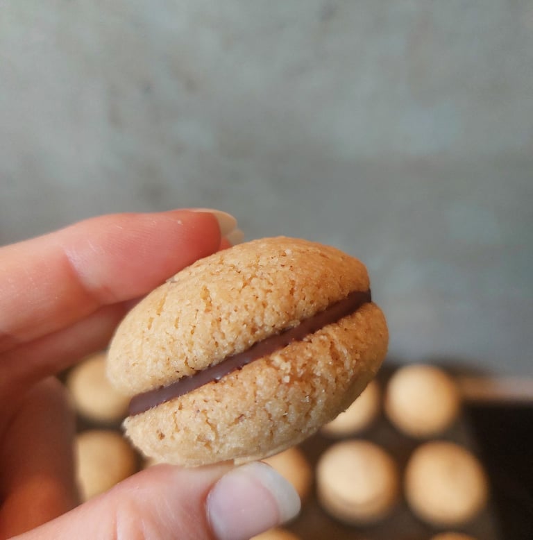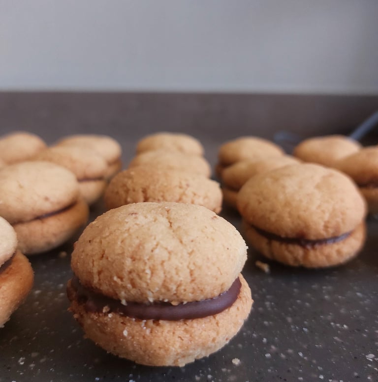 Baci di dama zijn gevulde koekjes afkomstig uit Noord-Italië, die met chocolade worden samengevoegd. Onze versie met hazelnoten, gecombineerd met de chocoladevulling, doet een beetje denken aan de geliefde smaak van Nutella. 'Baci di dama' betekent in het Italiaans 'kus van de dame', dus ik raad aan om ze te delen met iemand die je liefhebt. Een heerlijk cadeau!