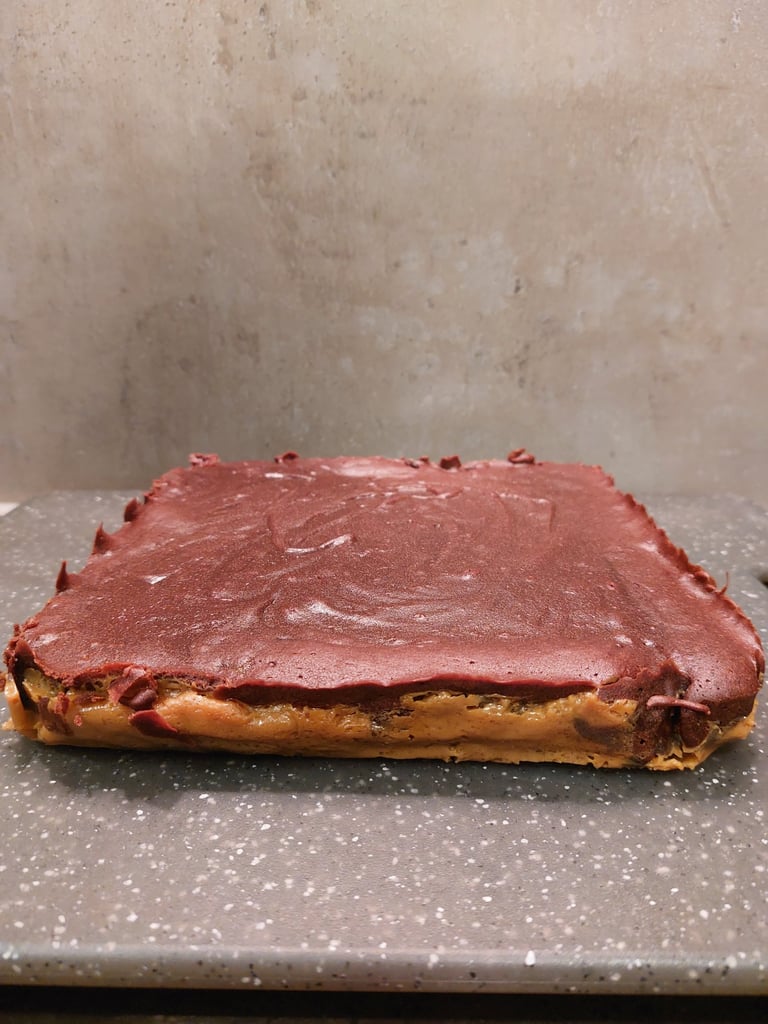 Veel mensen verwarren dulce de leche met karamel, maar ze zijn heel verschillend en een echte fijnproever kan deze twee lekkernijen onderscheiden. Dulce de leche, populair in Argentijnse desserts, ontstaat door melk met suiker te koken, terwijl karamel gemaakt wordt van water met suiker. Hierdoor ontstaat een heerlijke, dikke crème waarmee we onze brownie vullen. De hele combinatie is dus vochtig, zacht, romig en natuurlijk verrukkelijk!
