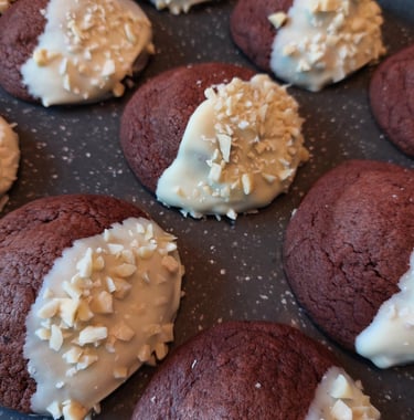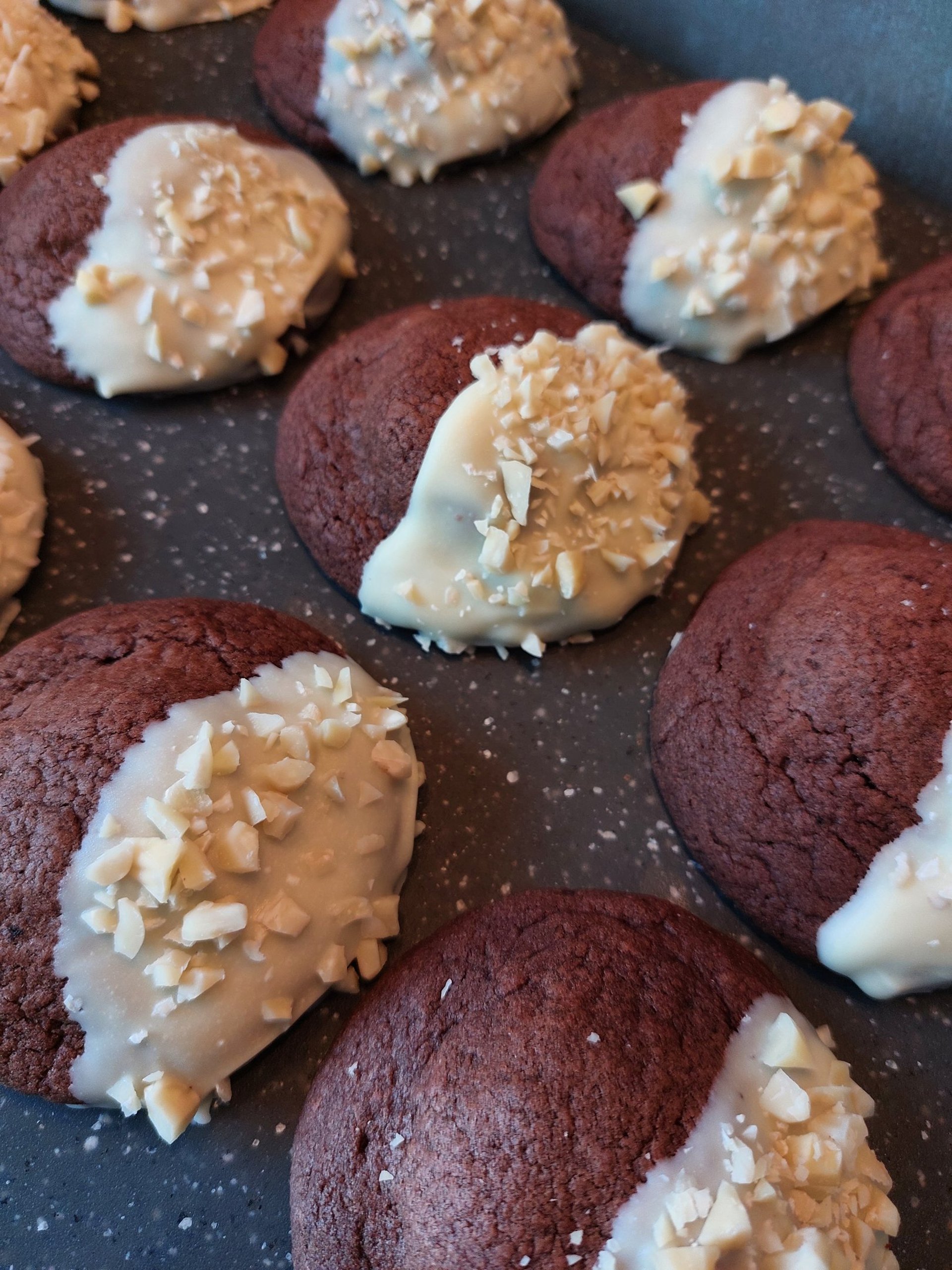 Nog meer koekjes voor marsepeinliefhebbers. Deze chocoladekoekjes worden gekenmerkt door een vleugje kaneel en amandelen, en vooral door hun marsepeinen vulling. De laag witte chocolade voegt de benodigde zoetheid toe en geeft ze hun kenmerkende zwart-witte kleur. Deze koekjes zijn geliefd bij kerstliefhebbers, maar ik kan garanderen dat ze het hele jaar door heerlijk smaken.
