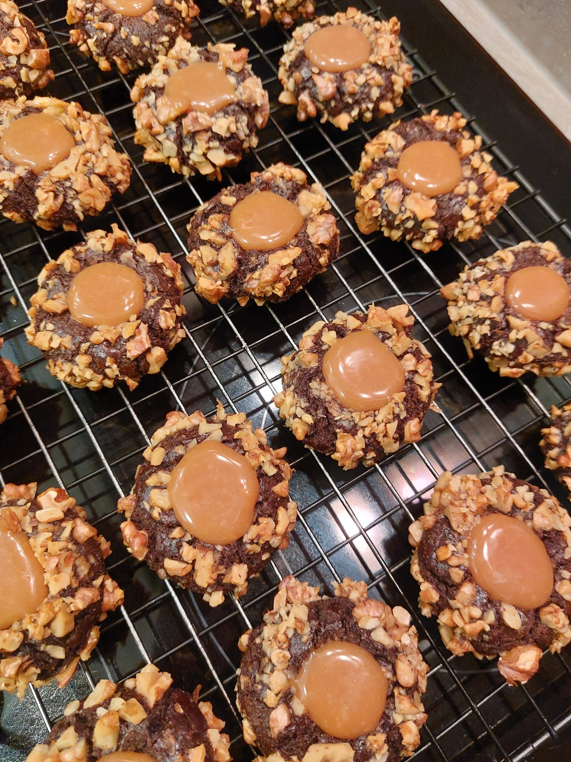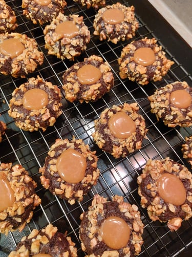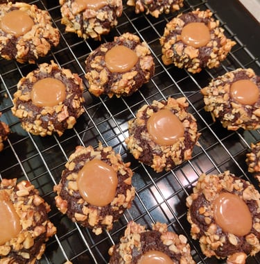 Is er een manier om het met noten bedekte cacaokoekje te verbeteren? Natuurlijk. Geef hem gewoon een vulling gemaakt van heerlijke toffee. Deze prachtige koekjes met een intense cacaosmaak staan prachtig op een bord als de familie op bezoek komt en passen perfect bij goede koffie.