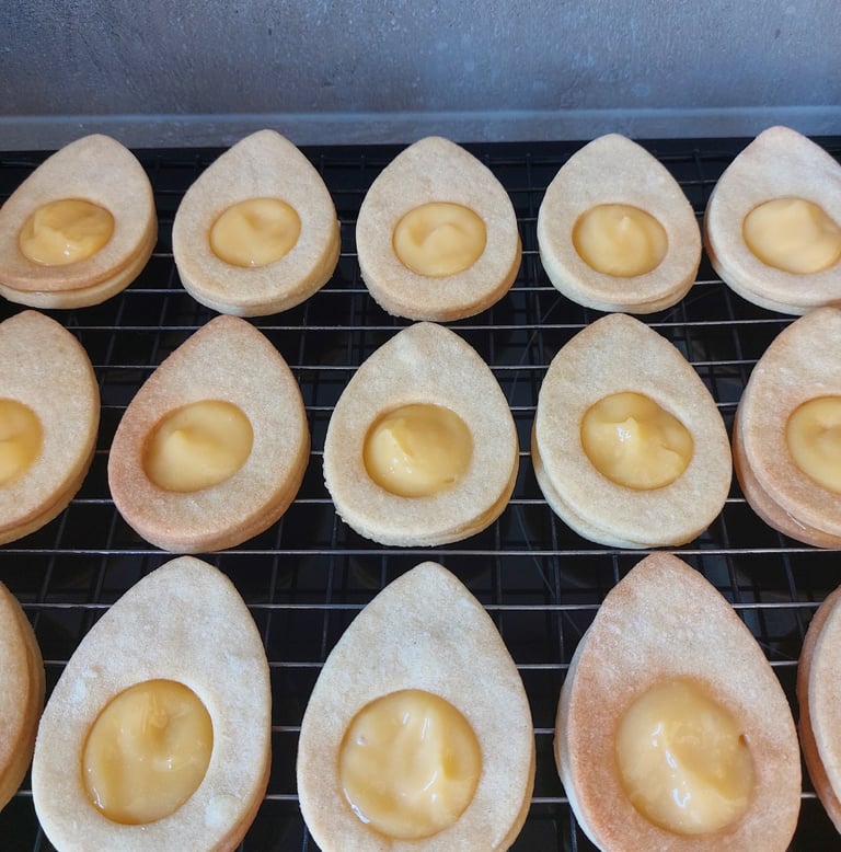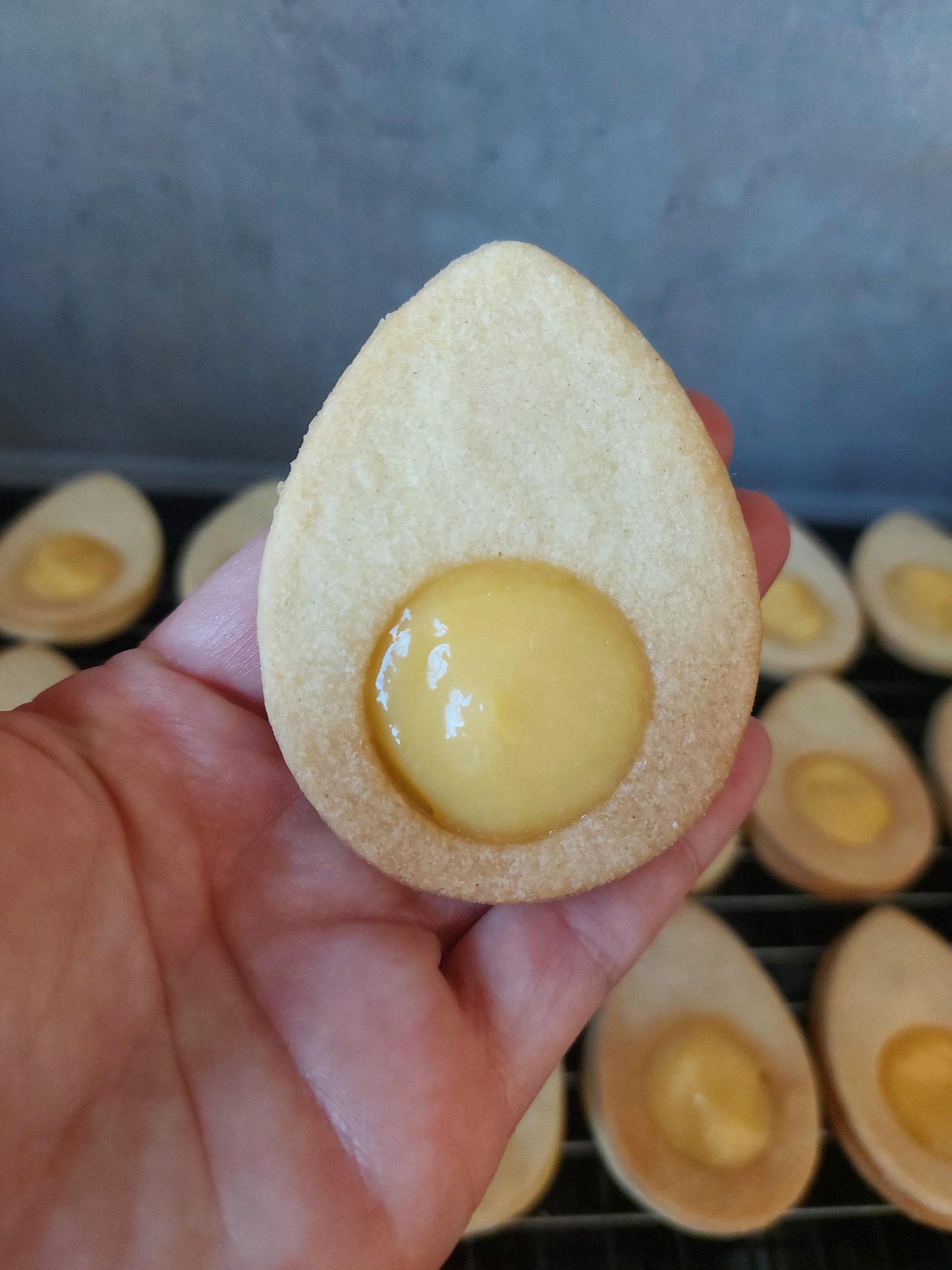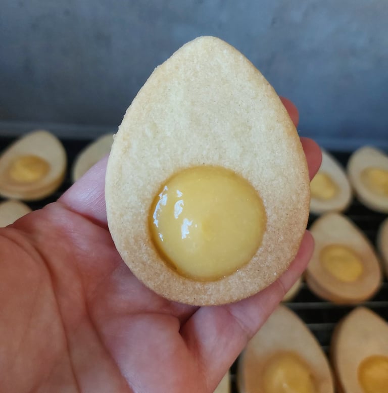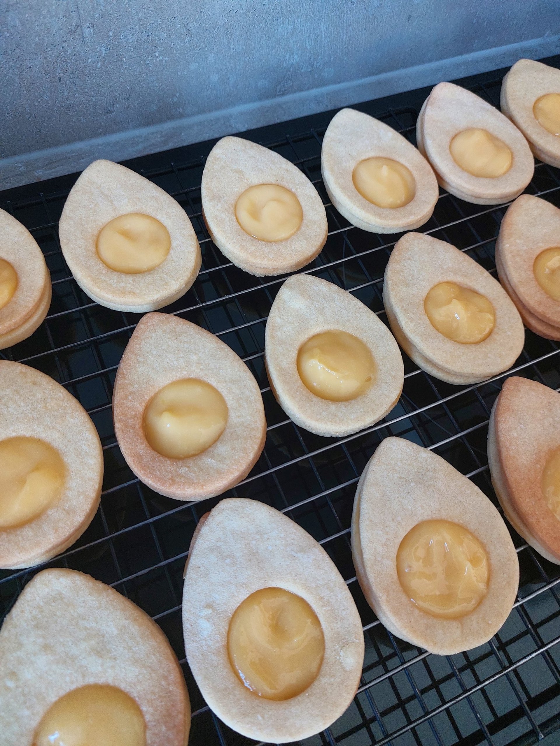 Boterkoekjes met een zoetzure citroencurd zijn ons voorstel voor een heerlijke paassnack. Deze eivormige koekjes met een gele vulling die op een eidooier lijkt, zijn perfect als decoratie op de paastafel of bij een kopje thee na het eten. Een traktatie voor elke liefhebber van boterkoekjes en citrussmaken – je kunt er niet aan weerstaan!