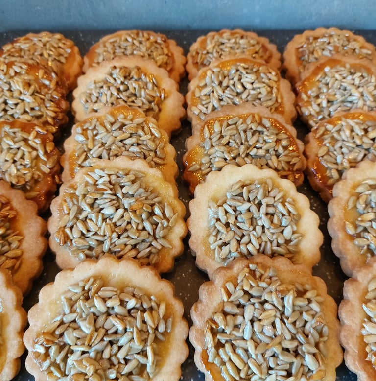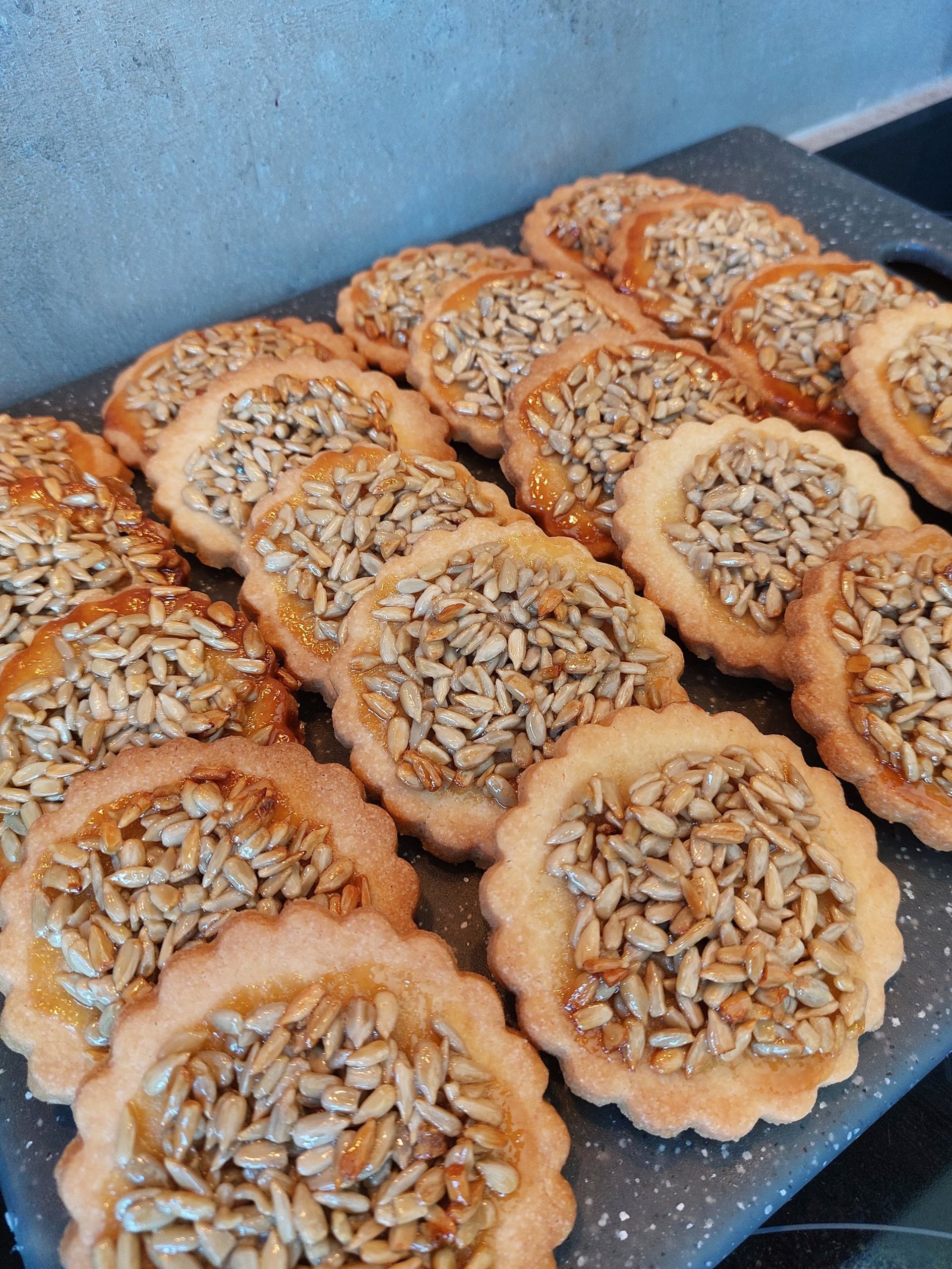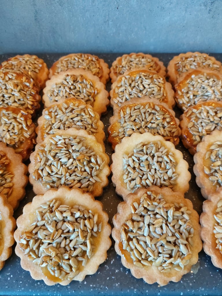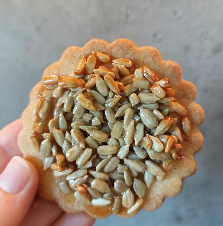 Deze koekjes zijn een ware reis terug in de tijd, naar eenvoudige maar vaak vergeten smaken. Want wie houdt er niet van een heerlijk boterig, krokant koekje, hier met een vleugje karamel en geroosterde zonnebloempitten, die tegenwoordig helaas zelden in desserts worden gebruikt? Deze koekjes staan voor eenvoud, klassiekers, maar ook voor een diepe en onvergetelijke smaak die je absoluut moet proberen.