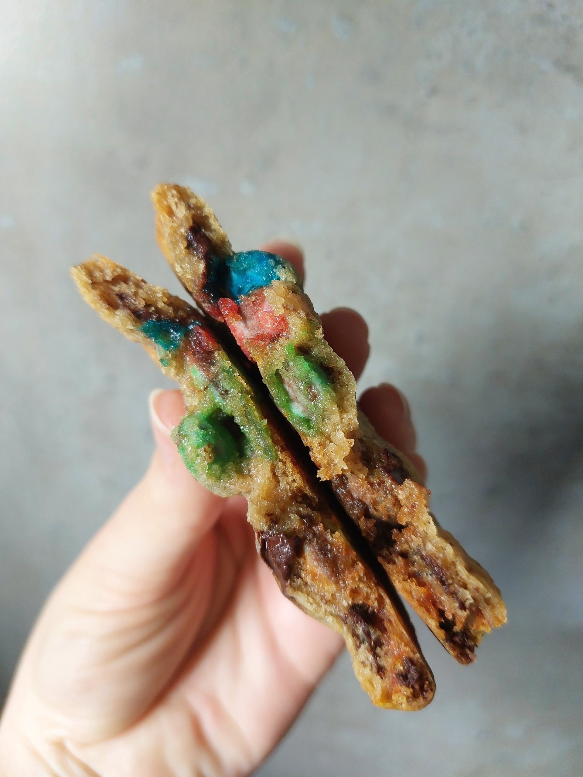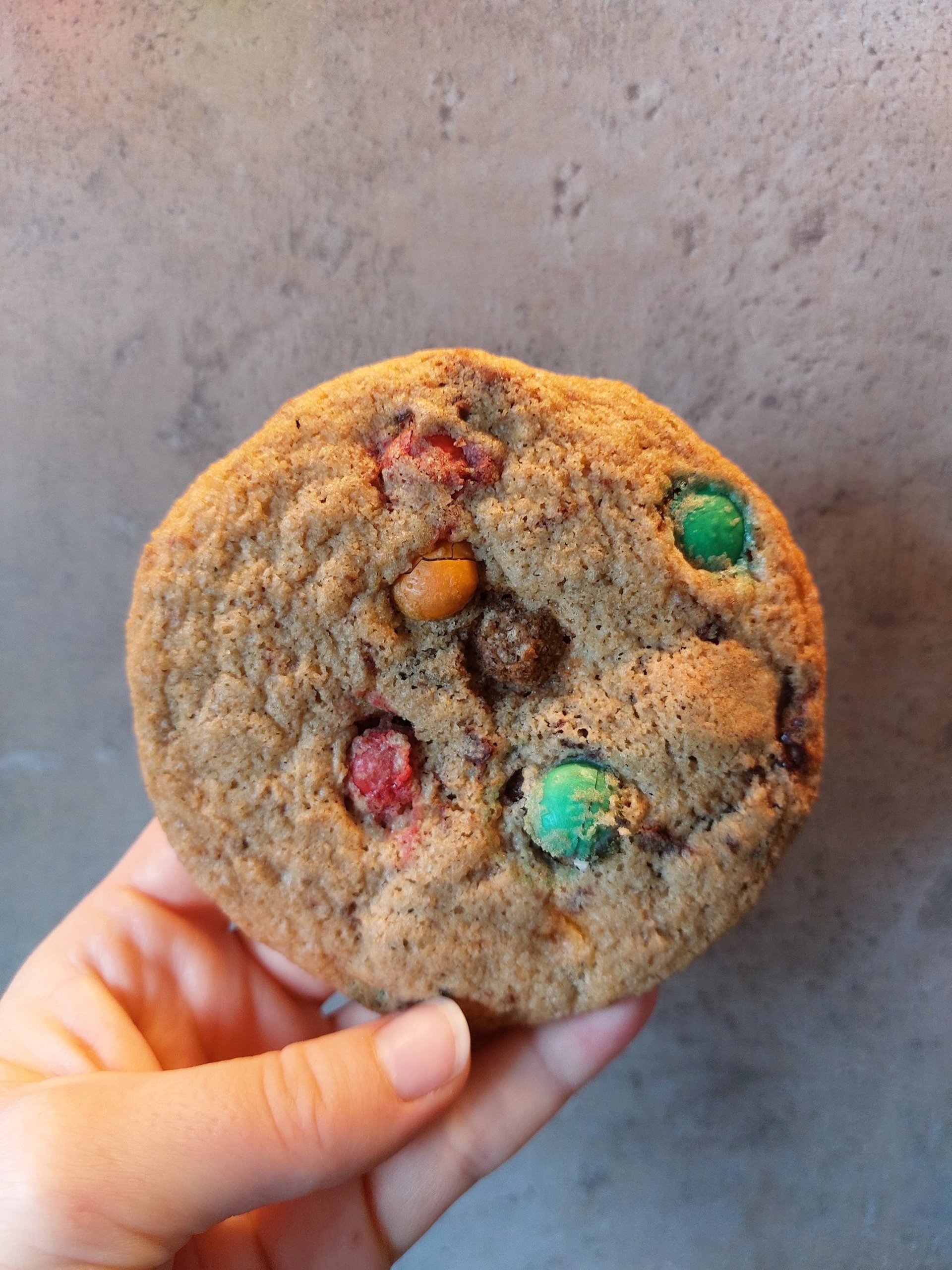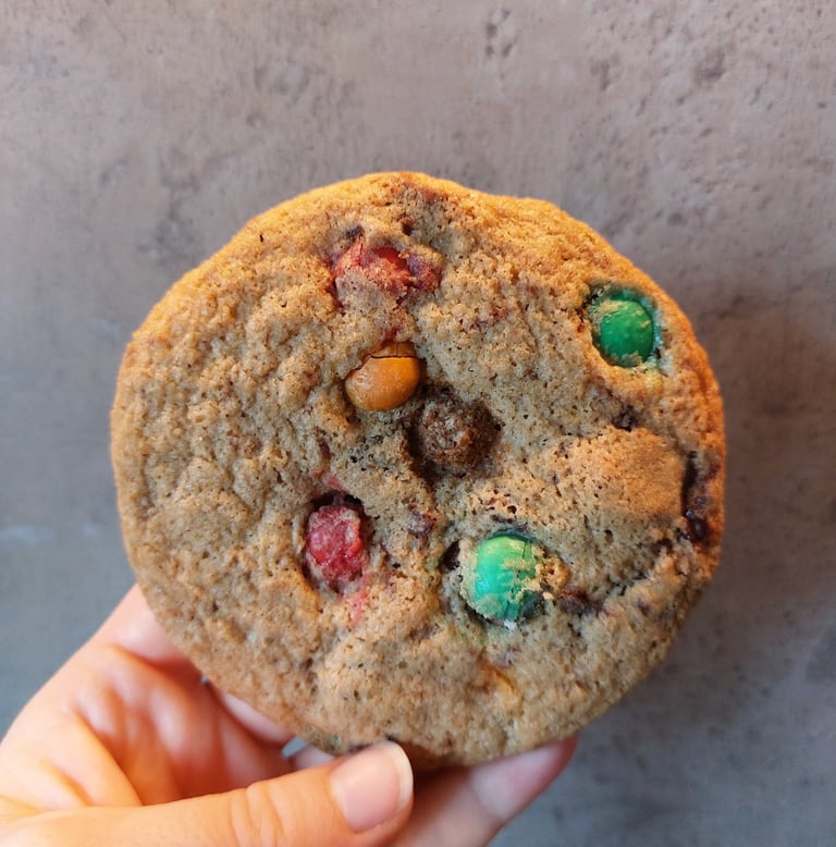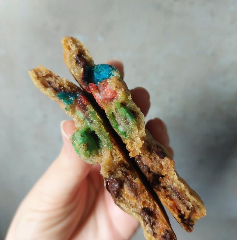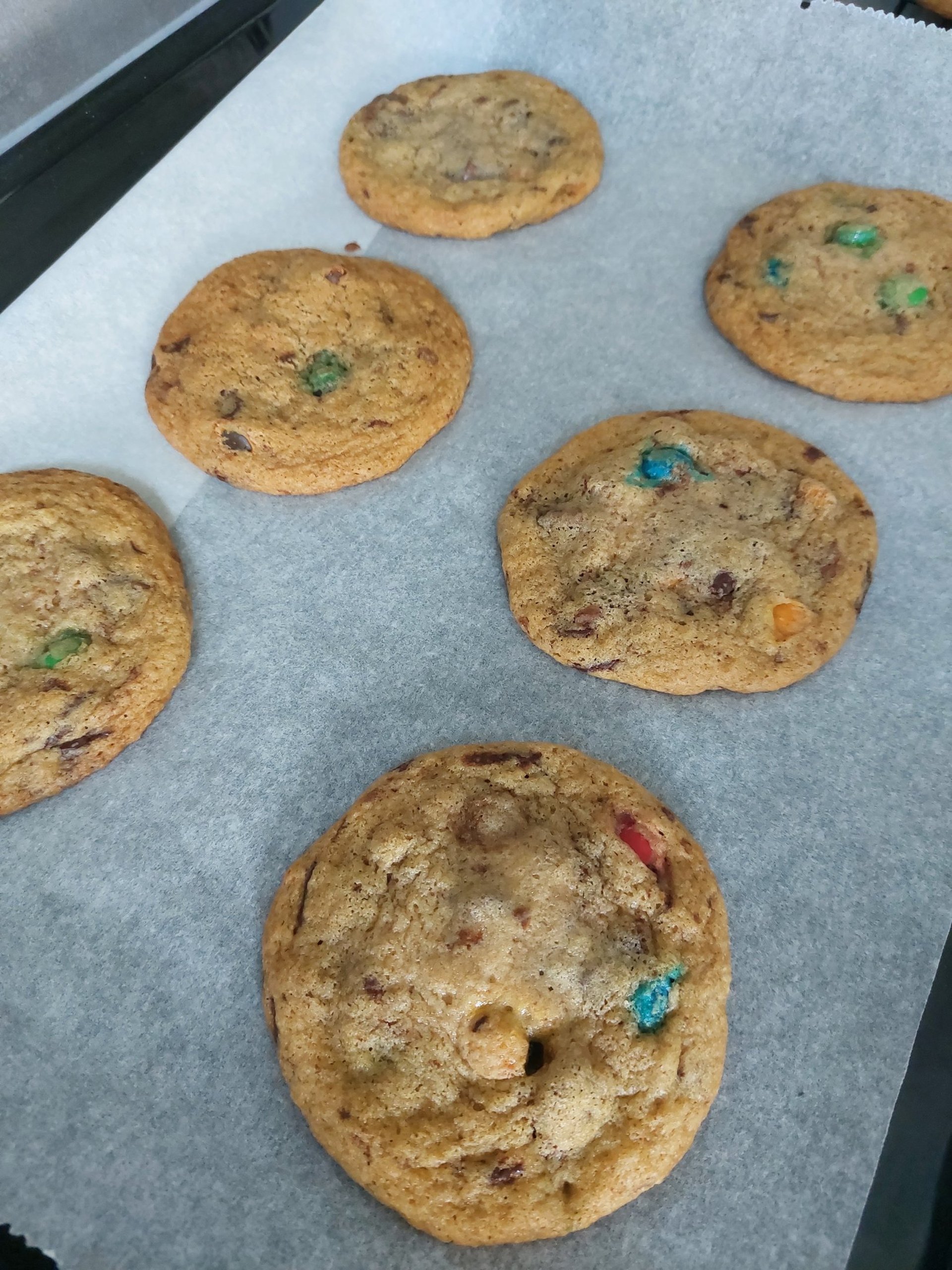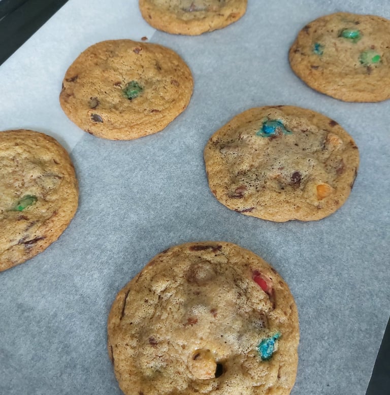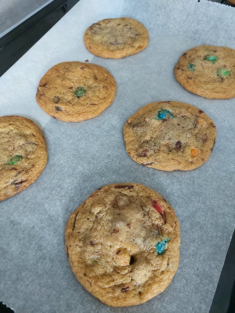 Zacht van binnen en knapperig van buiten, deze Amerikaanse stijl koekjes zijn deze keer in een variant met de populaire en geliefde M&M's. Ze zijn perfect als zoete snack of dessert, zowel alleen als bij een kopje koffie of thee. Wij vinden ook dat deze koekjes geweldig zijn voor de kerst, omdat ze heel kleurrijk zijn en prachtig presenteren als zogenaamde 'koekjes voor de kerstman'. Maar je hoeft niet te wachten tot de feestdagen om ze te proberen!