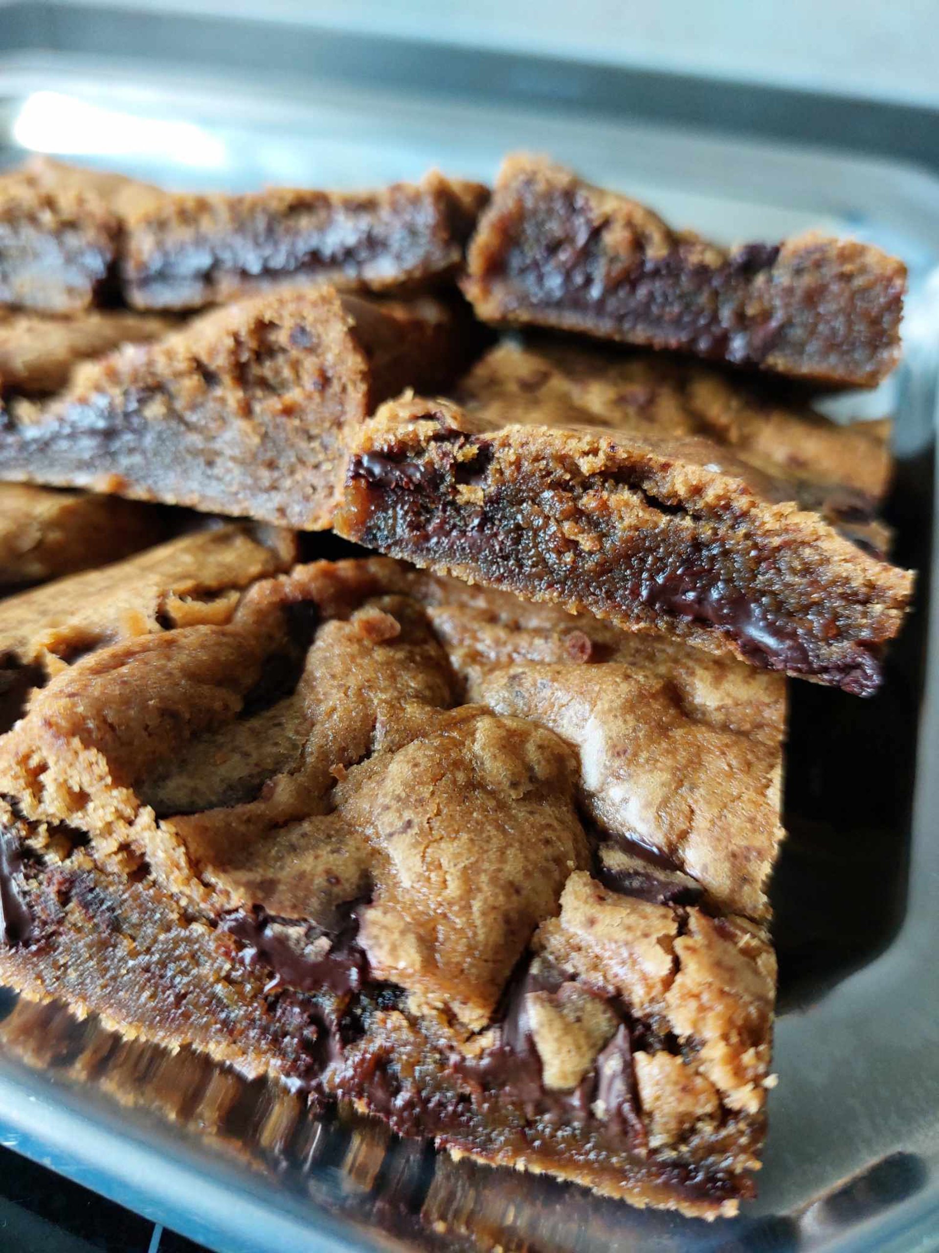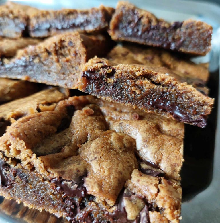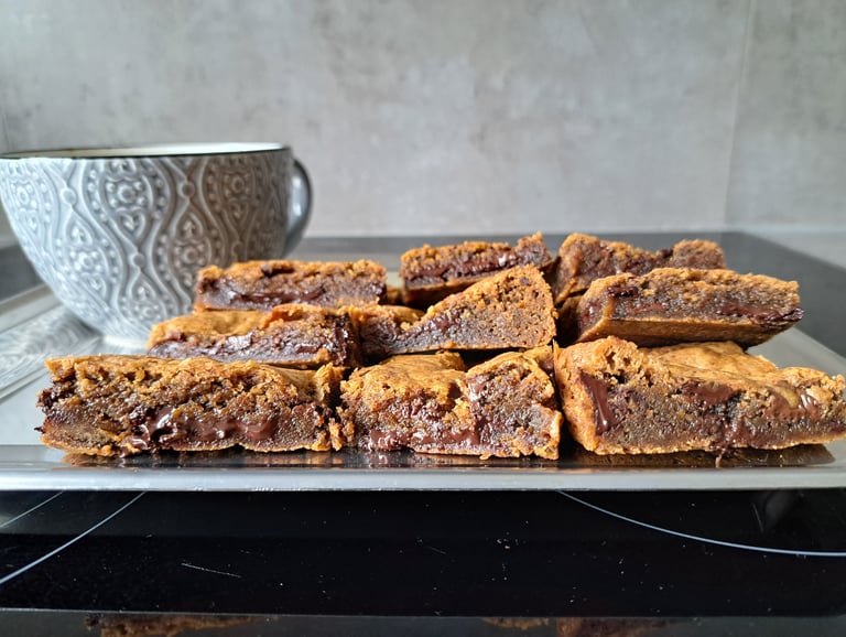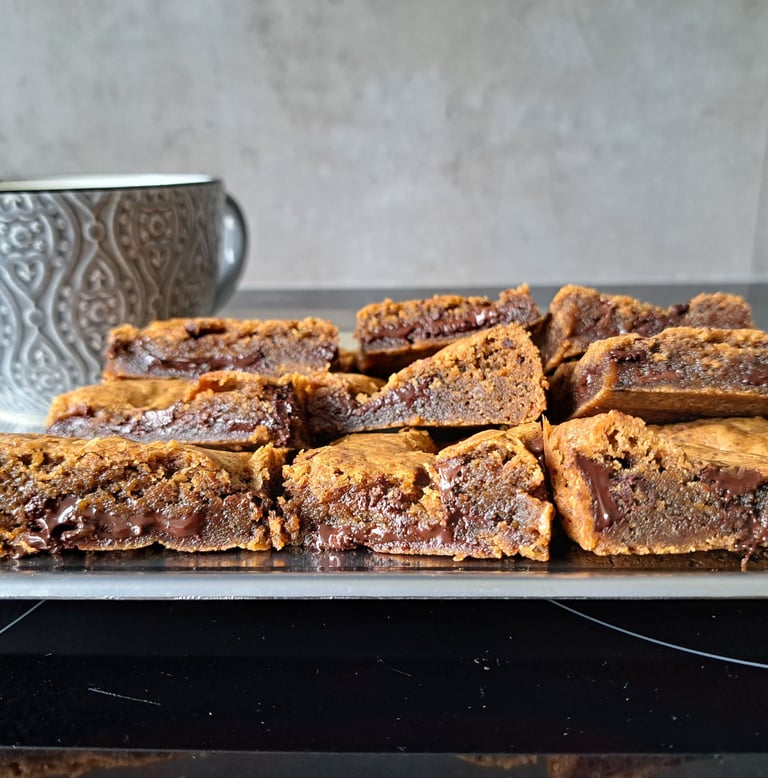 Iedereen weet wel wat een brownie is, maar weinig mensen weten wat een blondie is. Een blondie heeft dezelfde structuur en textuur als een brownie, maar het enige verschil is dat er geen cacao direct aan het deeg wordt toegevoegd. Maar geen zorgen, chocoholics, onze blondie is gemaakt met grote stukken heerlijke, pure chocolade die perfect samengaan met de smaak van koffie. Dus als je net zoveel van koffie houdt als wij, raden we je dit heerlijke gebakje aan.