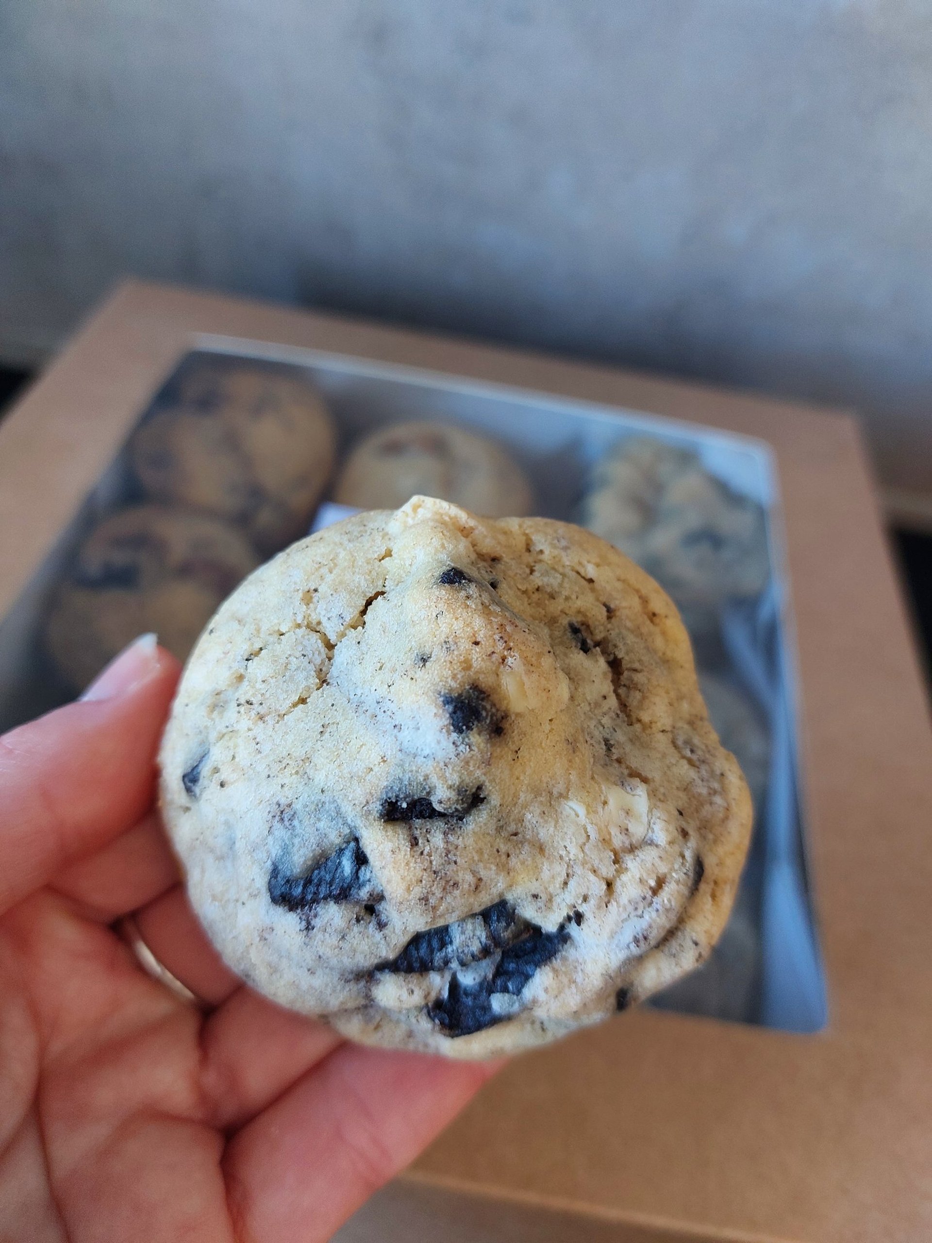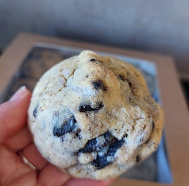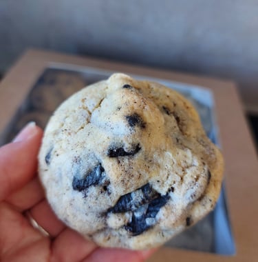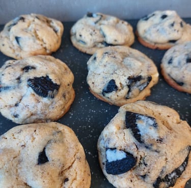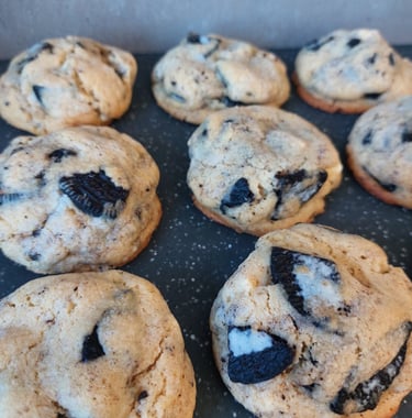 Amerikaanse koekjes met witte chocolade en stukjes Oreo. Dat is de kortste manier om ze te beschrijven, maar het zegt eigenlijk helemaal niets.Onze Oreo koekjes nemen je smaakpapillen mee op een echte reis. Ze zijn krokant aan de buitenkant en zacht vanbinnen, en dankzij de stukjes witte chocolade en Oreo krijg je een heerlijke mix van texturen.Bovenal zijn ze heerlijk zoet en hun formaat laat je echt genieten en voelen dat je iets bijzonders hebt gegeten. Hemels lekker!