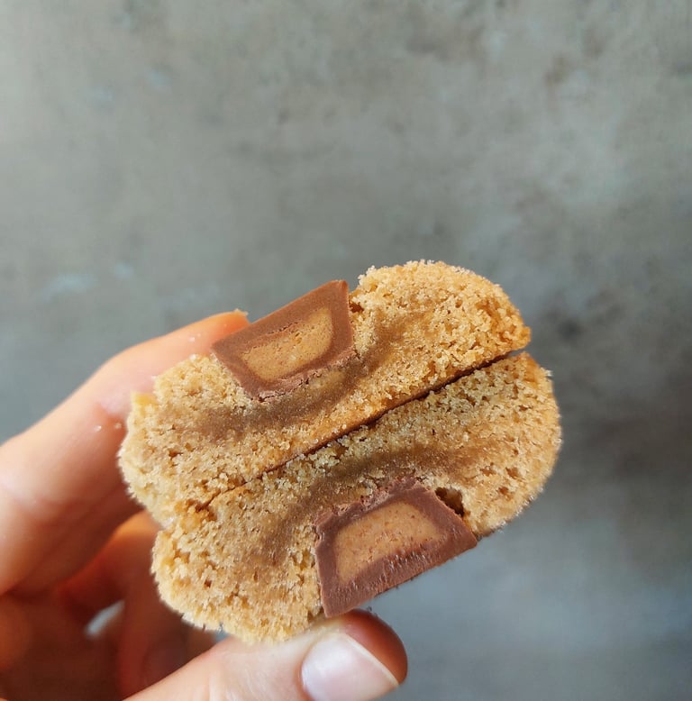 Voor mensen die Reese's niet kennen, is het een soort klein chocoladen cupje, helemaal gevuld met pindakaas. Als je een liefhebber bent van deze unieke smaak, is dit de perfecte zoetigheid voor jou. Maar is er een manier om deze ervaring nog meer te versterken, zodat je smaakpapillen in de zevende hemel zijn? Natuurlijk wel! Onze Reese's koekjes bevatten een extra portie pindakaas! Ongelooflijk!