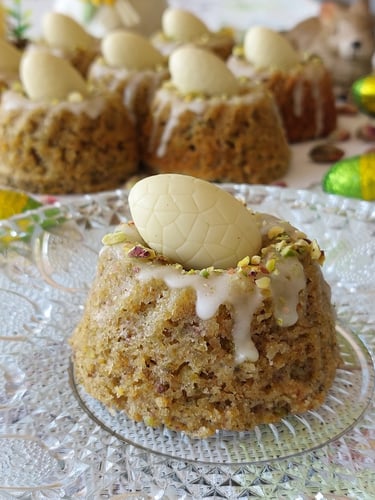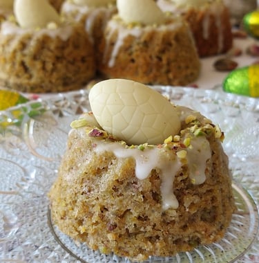 Geïnspireerd door vogelnestjes hebben we onze pistache mini-tulbandjes gemaakt. Hun unieke smaak komt van de combinatie van kardemom, citroen en pistachenoten, waaraan het gebakje zijn zachte groene kleur te danken heeft. De nestjes zijn zacht en vochtig, afgewerkt met een citroenglazuur en stukjes pistache. Een eitje van witte chocolade bovenop voegt charme en een zoete toets toe als contrast voor de citrusnoot. Ze zien er schattig uit en smaken nog beter!