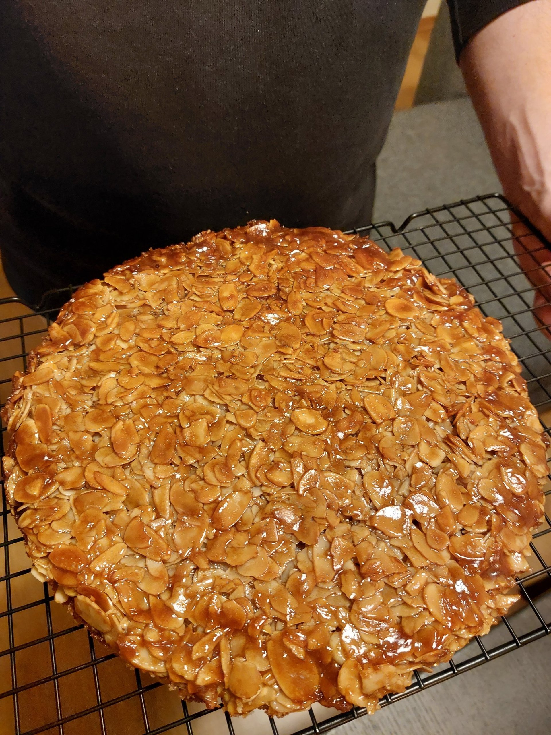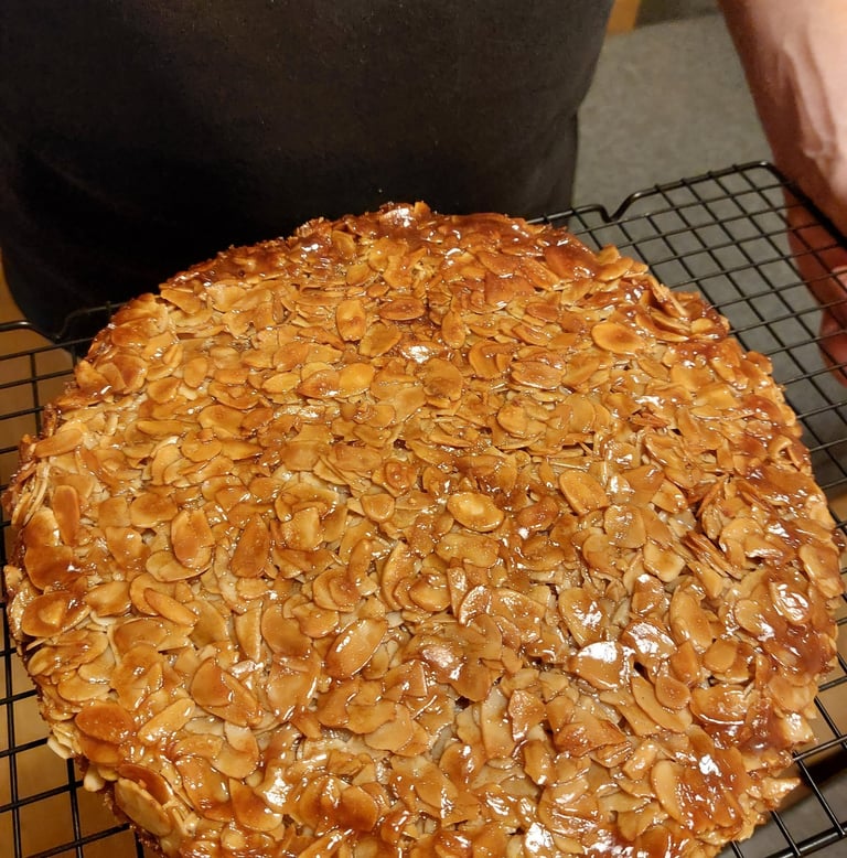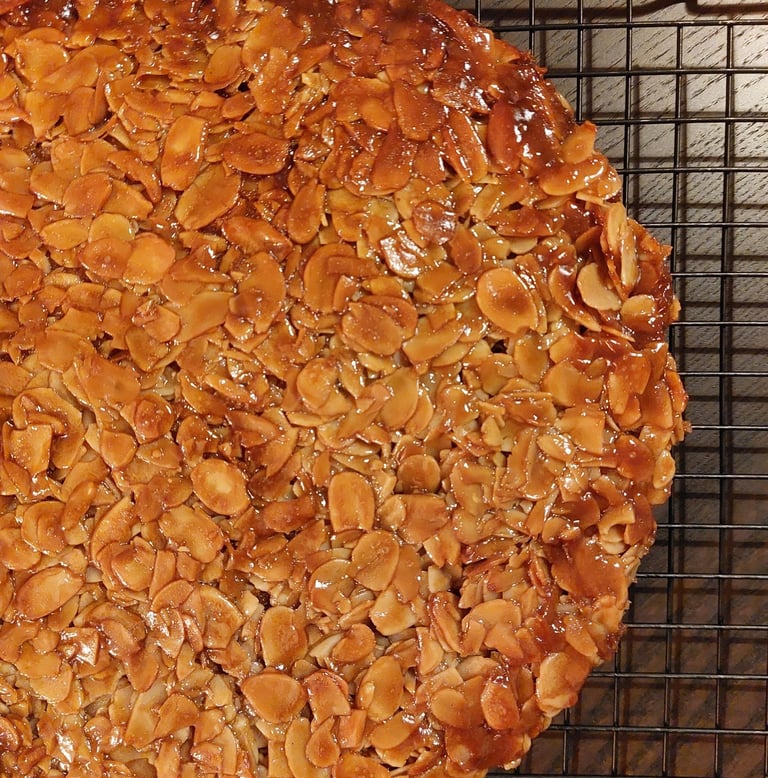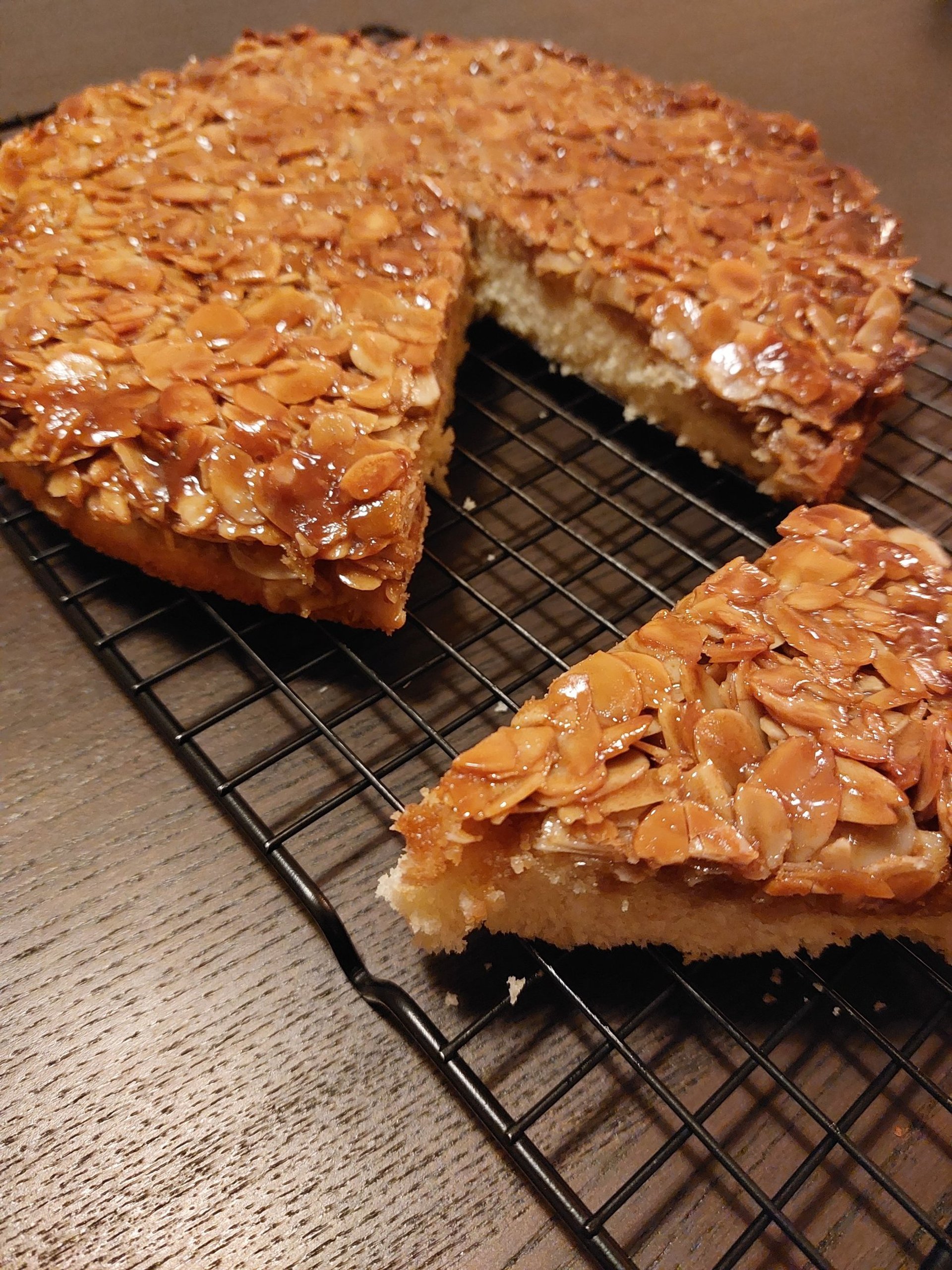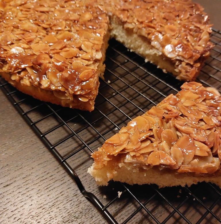 Toscakaka is een Zweedse delicatesse. Een laag, licht biscuitgebak belegd met een gekarameliseerde bruine suiker en amandelschilfers. Het is heerlijk! Wees gewaarschuwd: Taart die onbeheerd wordt achtergelaten, zal zeer snel door de rest van het gezin worden opgegeten!