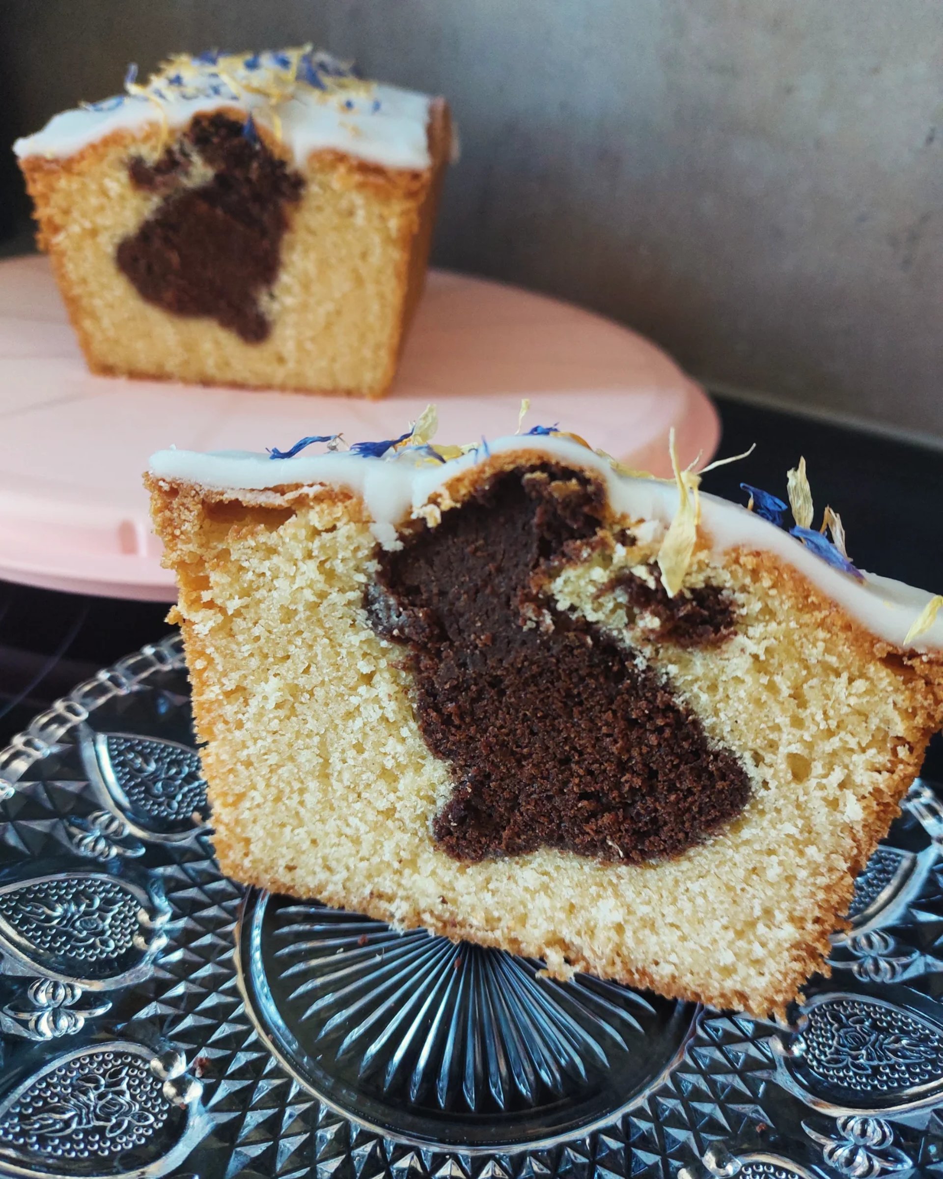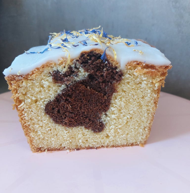 Vergeet die gewone, afgezaagde en vaak droge, in de winkel gekochte vanille-cacao marmercake. Dit is een kunstwerk! Een heerlijke, zachte, cacaohazenpaashaas, ingepakt in een vanilledekentje, overgoten met een royale laag zoete witte glazuur en versierd met eetbare bloemen. Mooi, lenteachtig en vooral zo verrukkelijk dat je niet bij één stuk zult stoppen!
